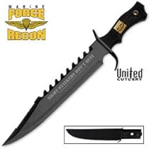 When the Marine Force goes into the night they need a knife that will get the job done. They carry this 16-3/4-Inch stalker with a 12-Inch 420 stainless steel blade with a double-serrated back edge. A rubberized handle features the Marine Force Recon logo and the whole package fits snugly in the included nylon sheath.- 16-3/4-Inch overall length